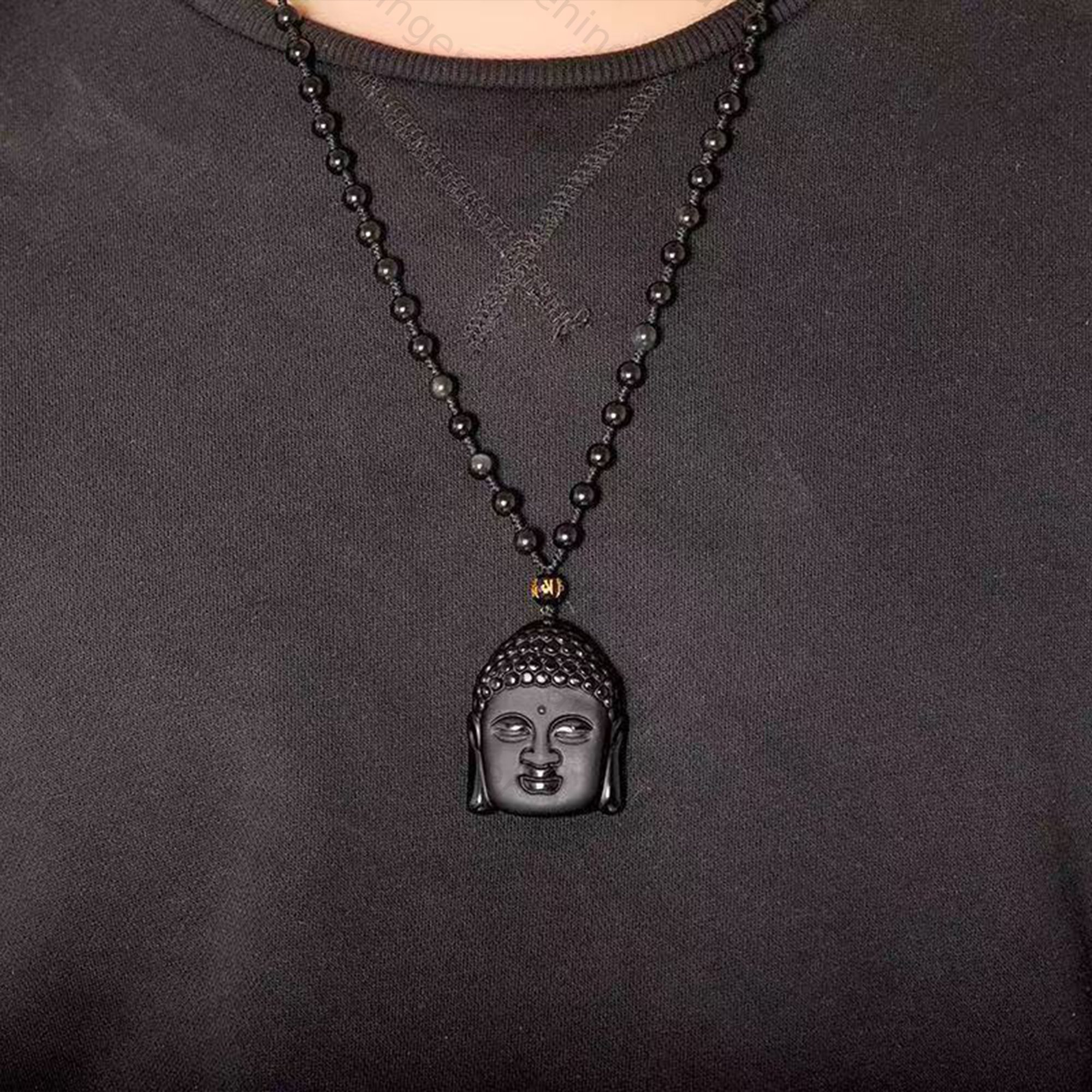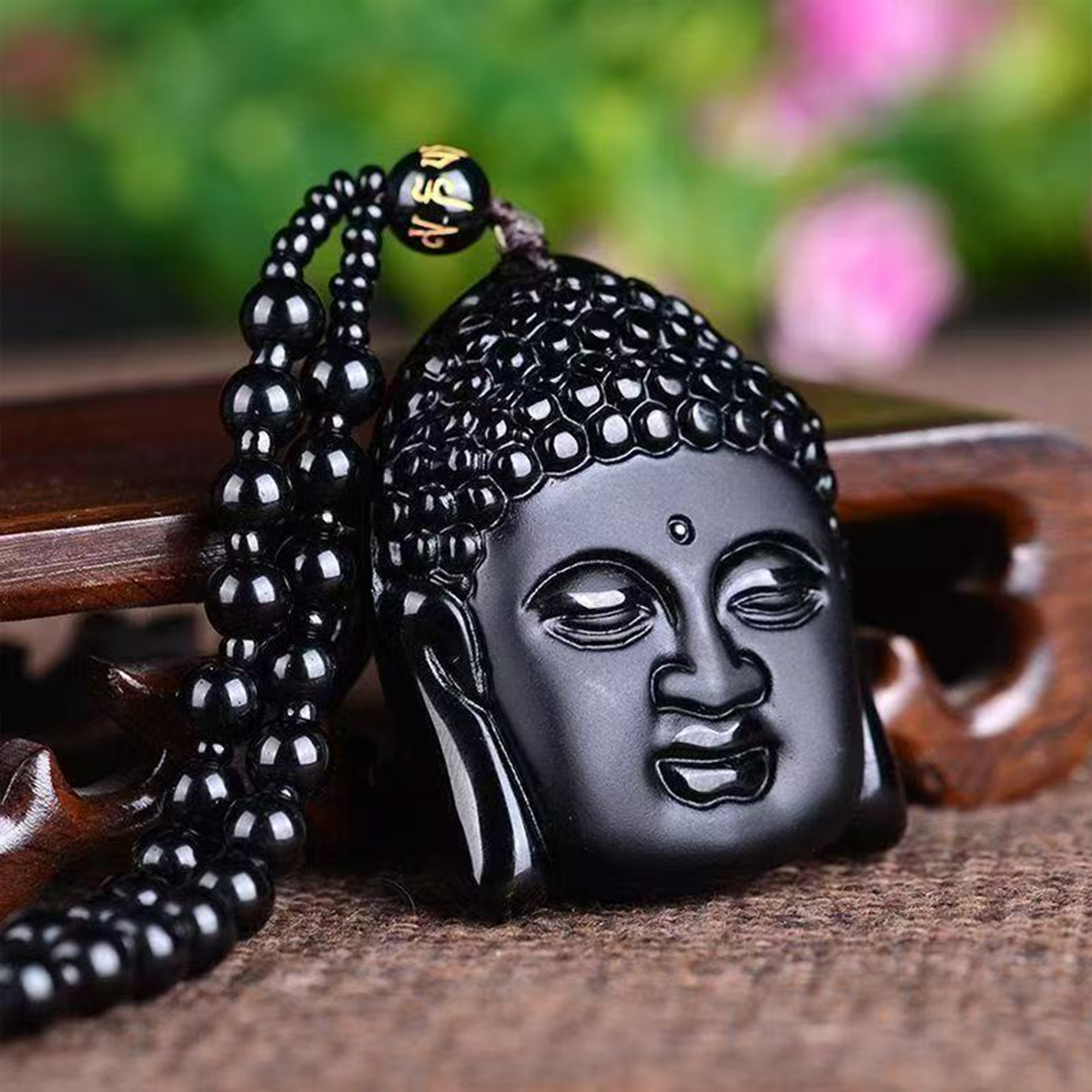 Obsidian Pendant: Buddha Head