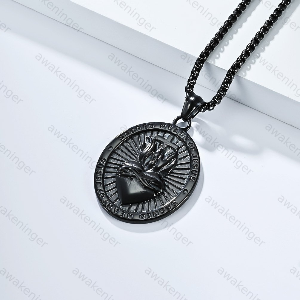 Retro Sacred Heart Cross Necklace – Men's Stainless Steel Pendant