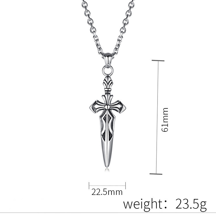 Retro Epee Cross Men'S Trendy Titanium Steel Pendant Personalized Retro Necklace Jewelry Factory Direct Sales
