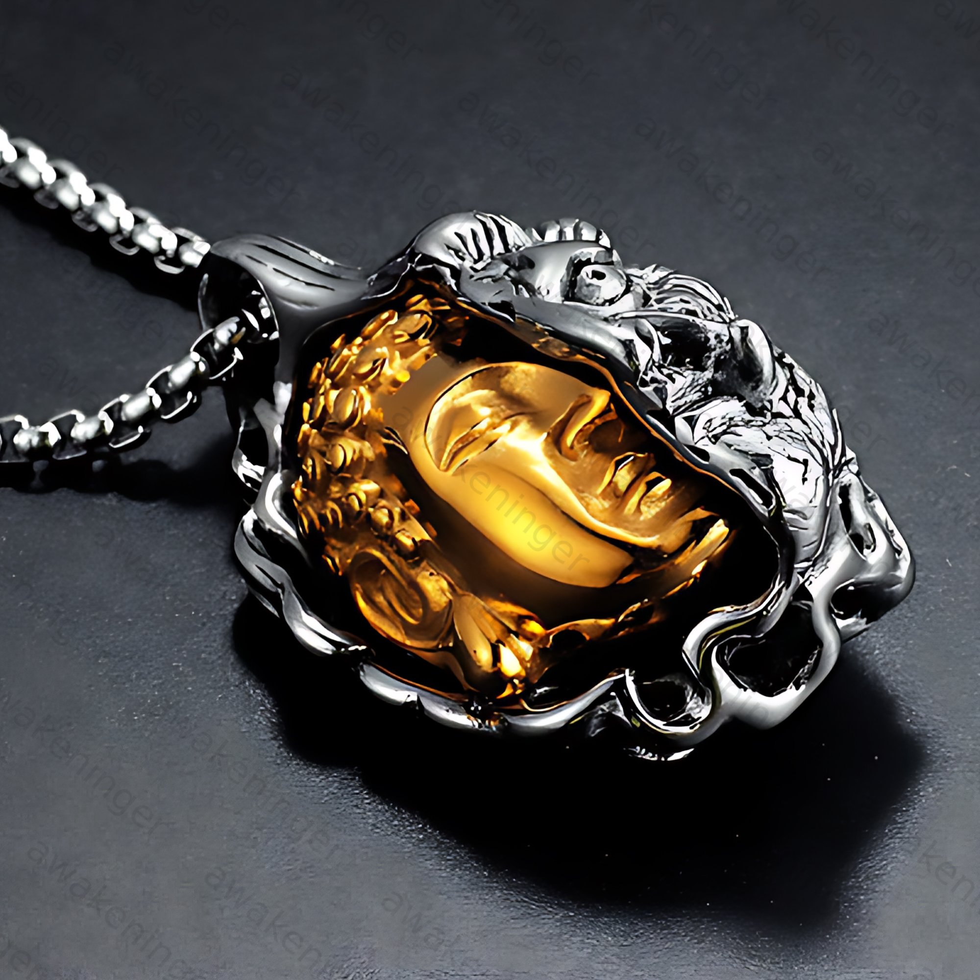 Retro Palm Buddha Titanium Steel Necklace with Personalized Vairocana Buddha Pendant