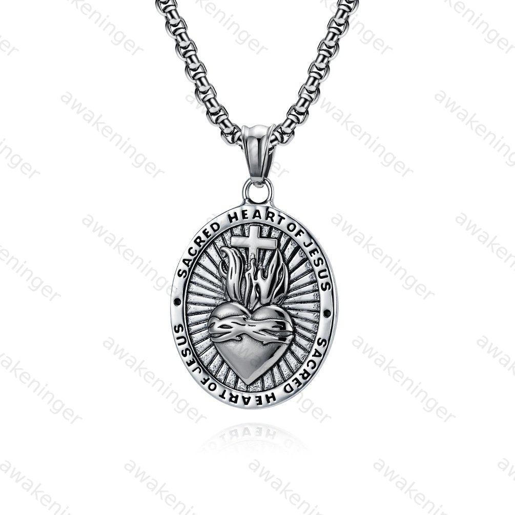 Retro Sacred Heart Cross Necklace – Men's Stainless Steel Pendant