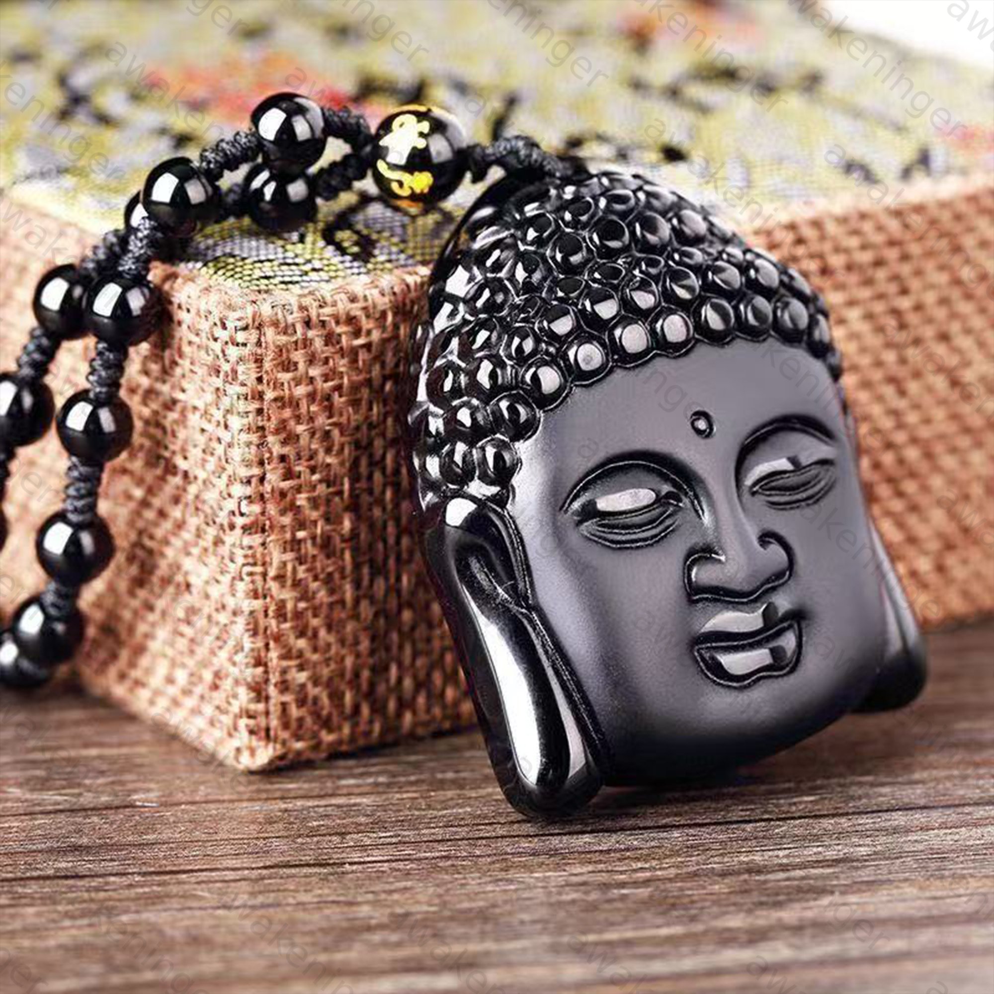 Obsidian Pendant: Buddha Head