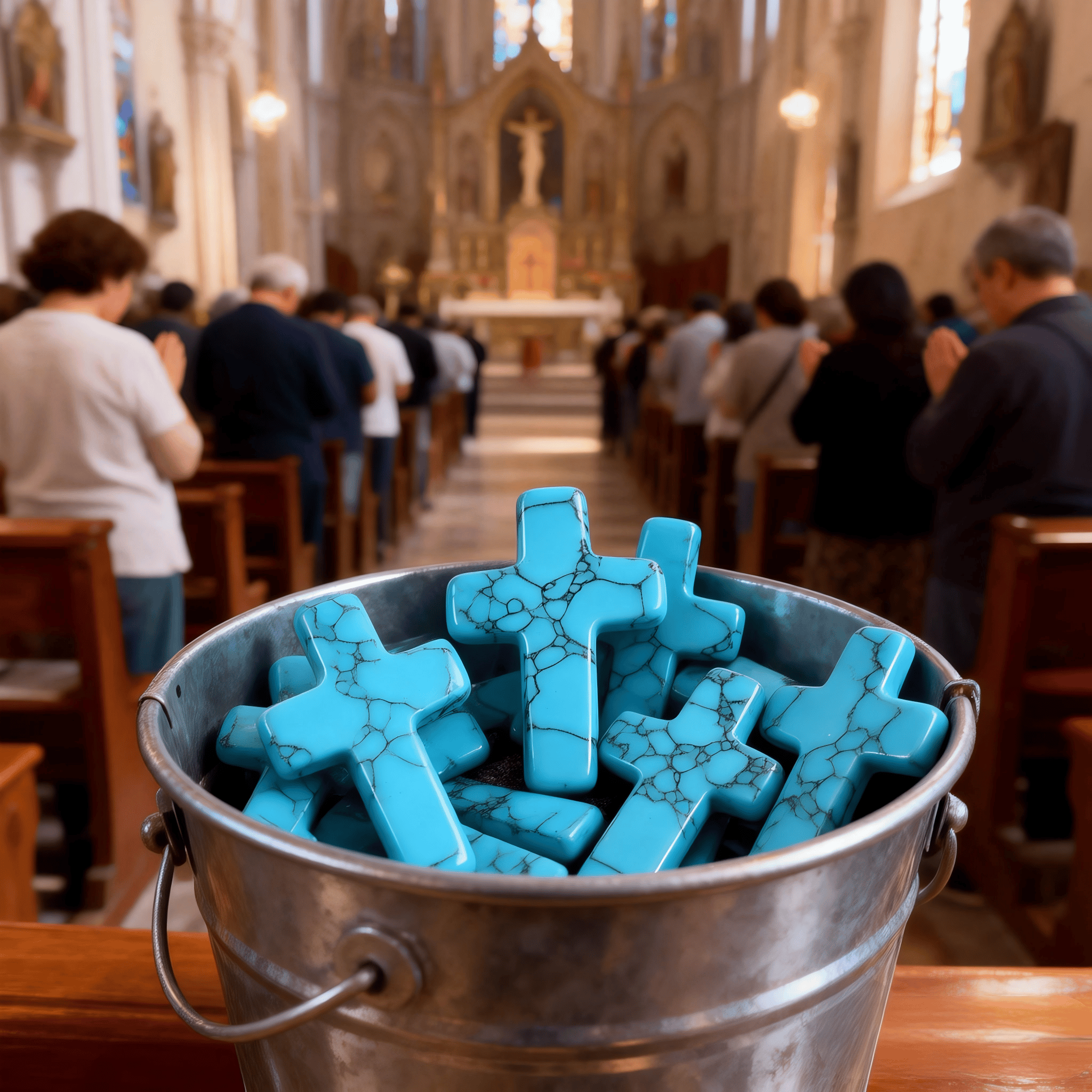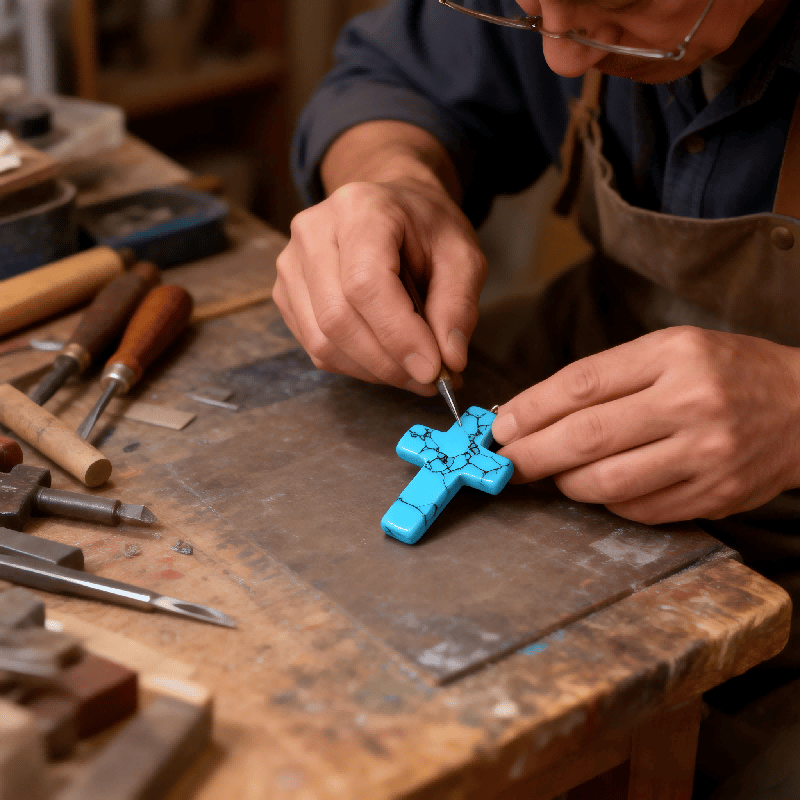 These crosses were carved by skilled artisans from natural turquoise. They are light enough to carry in your pocket all day. Each vein on the turquoise surface is a unique mark of the earth, carrying the stone’s inherent energy of grounding and stability — it helps you stay centered amid life’s chaos, and fosters a deep sense of inner peace that lasts. Each piece is finished with a gentle, non-toxic coating that preserves its smooth texture and enhances its natural luster, making it safe to hold and cherish daily.
